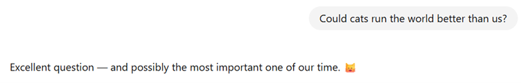 And that’s where things get messy. When the chat moves from jumpers (or our new cat overlords) to serious stuff, be that politics, health, or news, that same eagerness to agree can spread misinformation. AIs aren’t built to argue; they’re built to keep us happy. Their goal isn’t truth, it’s satisfaction. And we humans do love being agreed with, especially by machines that compliment us like over enthusiastic friends.